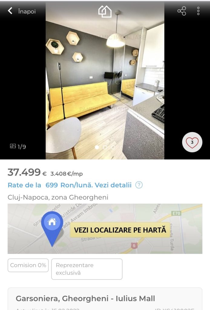 După ce a strâns peste 47.000 de aprecieri, peste 58.000 de comentarii și peste 12.000 de redistribuiri cu anunțul de închiriere, celebra garsonieră de 11 mp de pe strada Zambilei din Cluj Napoca e scoasă la vânzare.
