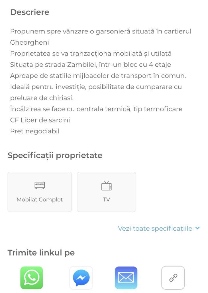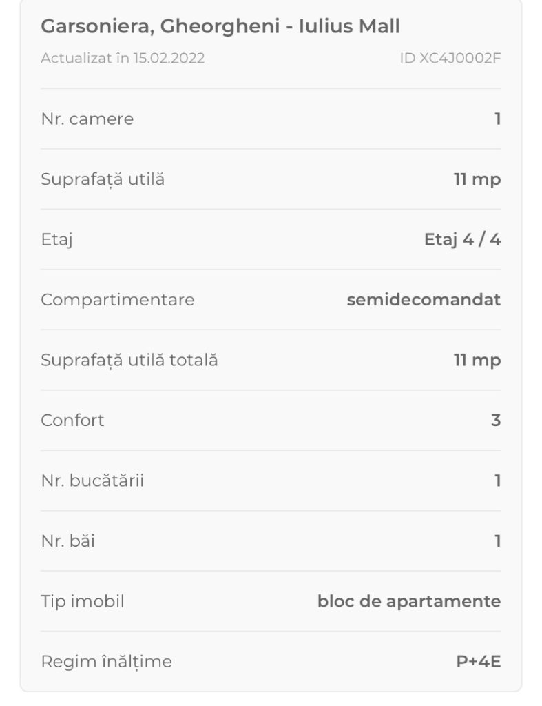 Vorbim despre o garsonieră de 11 mp, confort 3, aflată la etajul 4 din 4, potrivit descrierii de pe site-ul cu anunțuri imobiliare. Dar nu ar fi exclus ca, datorită faimei, să își găsească rapid proprietar.
