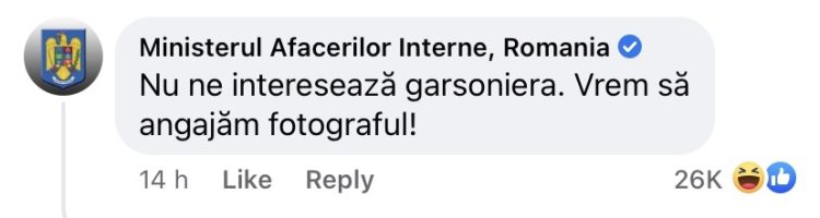 În urmă cu o săptămână, vestita garsonieră a atras inclusiv atenția Ministerului Afacerilor Interne, care a comentat pe pagina de facebook unde a fost postat anunțul de închiriere: „Nu ne interesează garsoniera. Vrem să angajăm fotograful”.