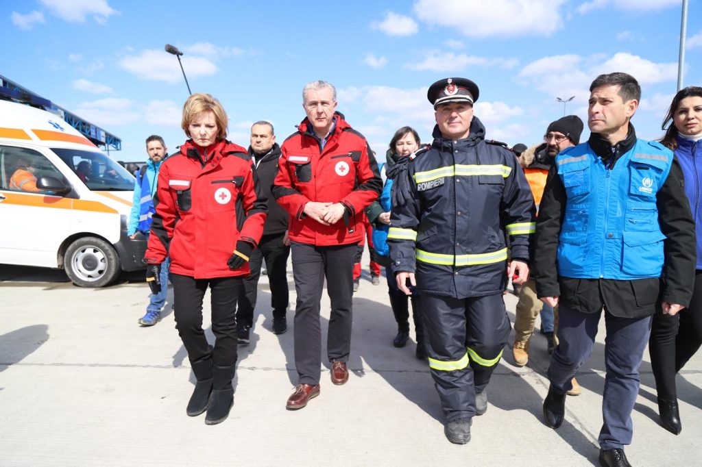 De asemenea, șeful ISU Tulcea, col. Daniel Petrov, a prezentat modul în care baza de operații este organizată și le-a vorbit Majestății Sale Margareta și Alteței Sale Regale Principele Consort al României Radu despre fluxul de tranzit al persoanelor ce intră pe teritoriul național.