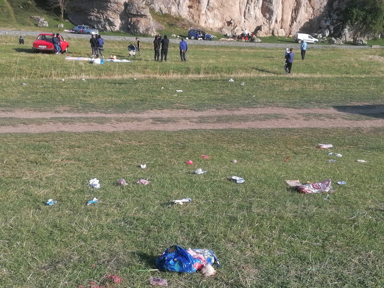 Astfel, ici-colo se mai zărea câte un pahar de plastic, câte un șervețel sau alte ambalaje aruncate pe pătura de verdeață.