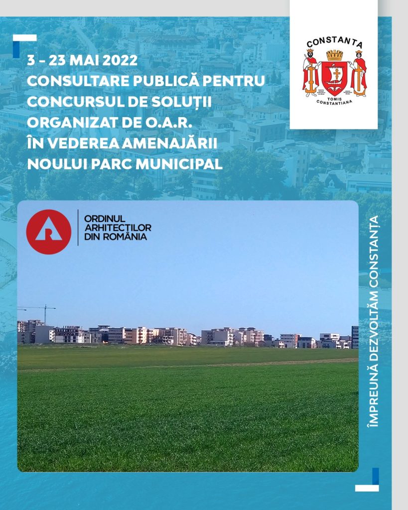 În parteneriat cu Ordinul Arhitecților din România, Primăria Municipiului Constanța organizează un concurs public de soluții pentru un nou parc municipal în jurul axei DN3C, o zonă cu potențial de dezvoltare în viitor. În acest sens, a fost demarat procesul de consultare publică, un demers indispensabil oricărei inițiative contemporane de remodelare a spațiului public, care se desfășoară în perioada 3 – 23 mai 2022.