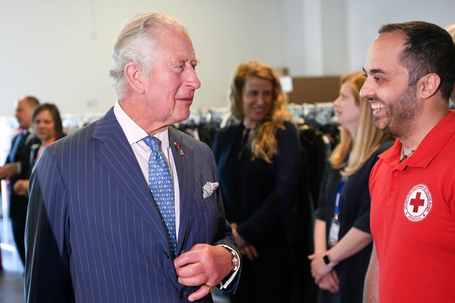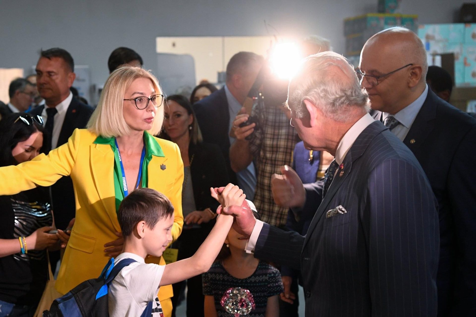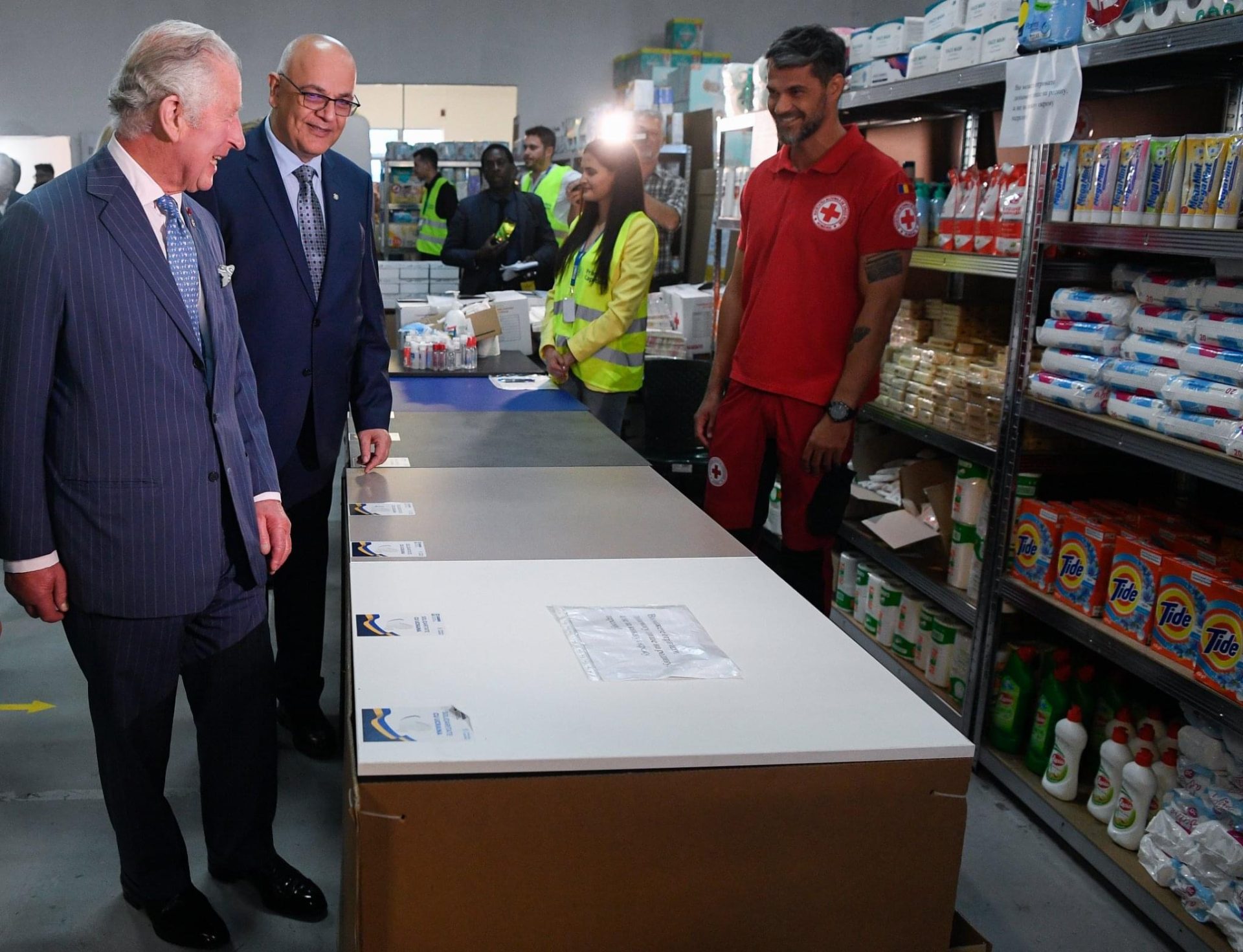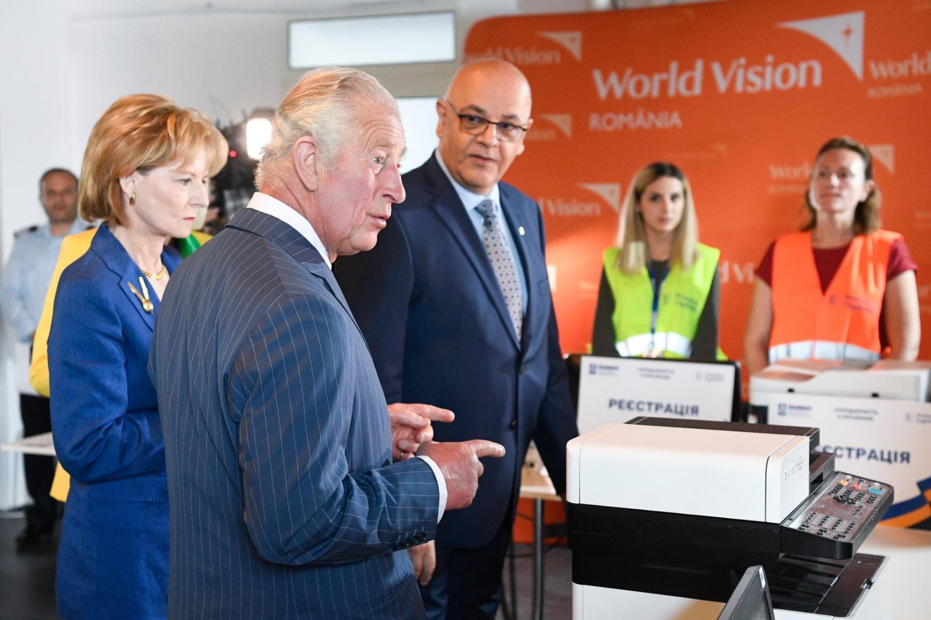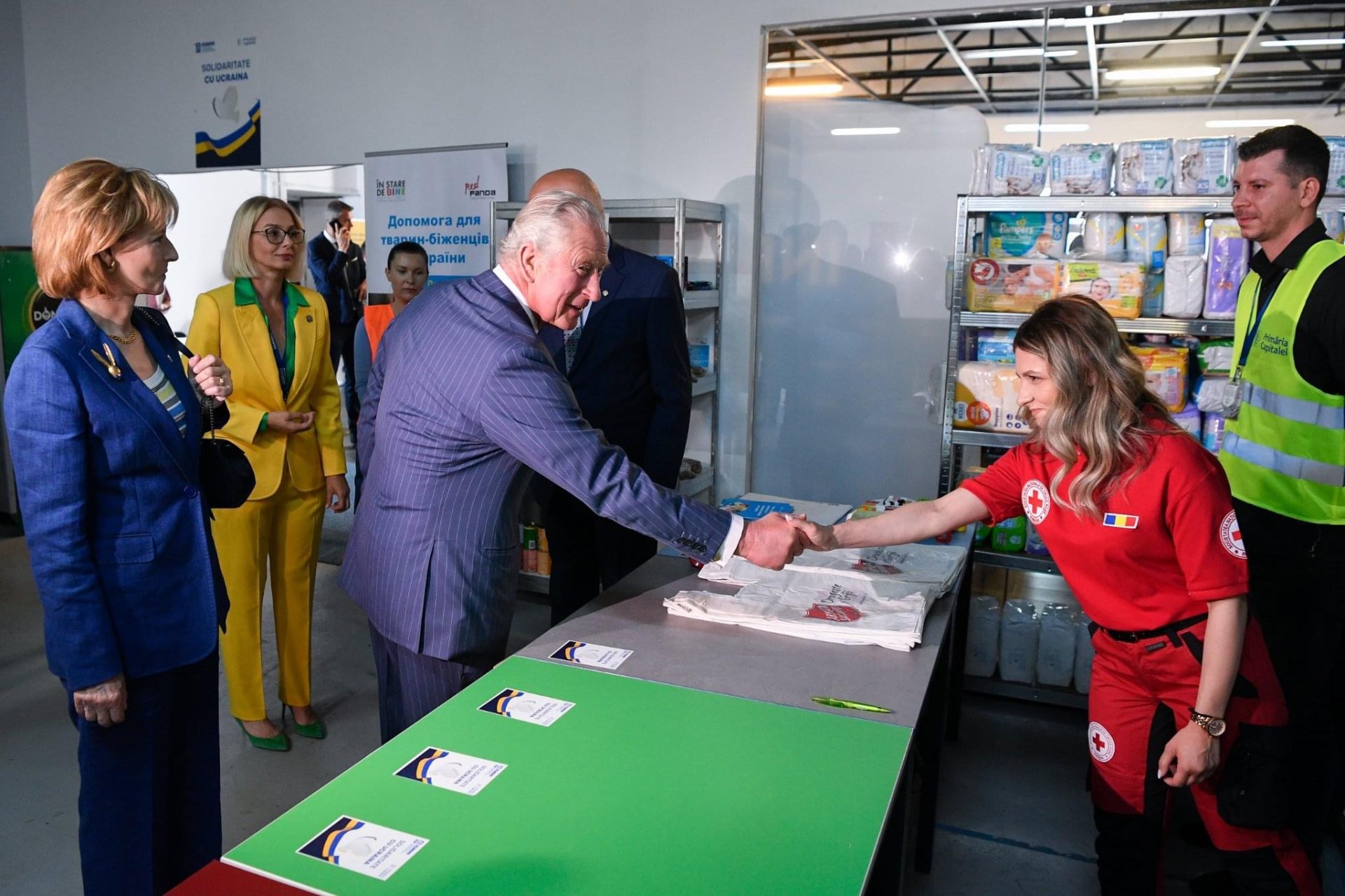Moștenitorul Coroanei Britanice a vizitat apoi centrul pentru refugiați din București, amenajat la Romexpo, unde a fost însoțit de Majestatea Sa Margareta, Custodele Coroanei Române, și de secretarul de stat Raed Arafat.