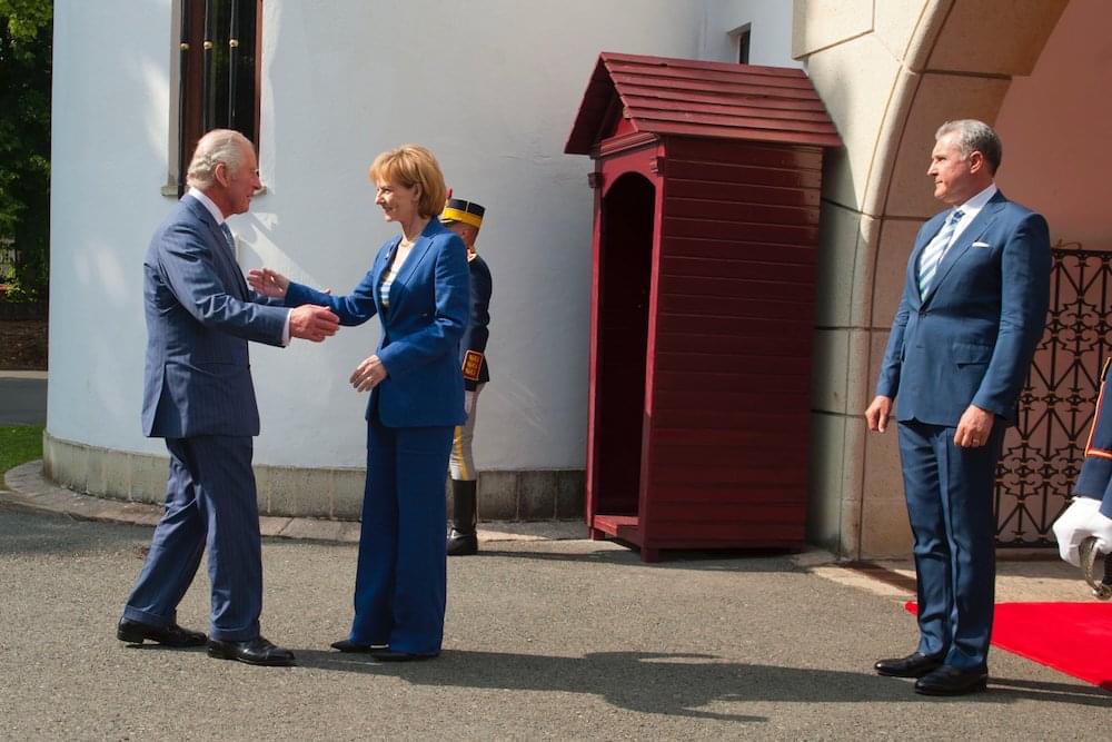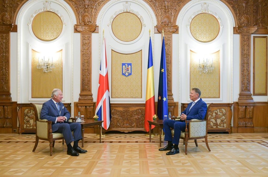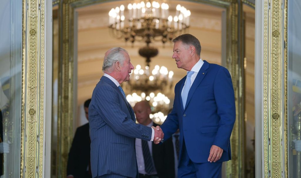 Prințul Charles a venit în România și și-a început vizita cu o oprire la Palatul Cotroceni, unde a fost primit de către președintele Klaus Iohannis, cu care a discutat despre mediu și schimbări climatice.