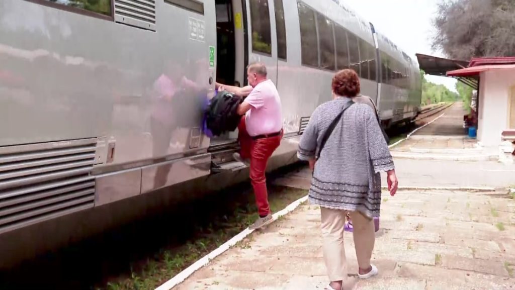 „Așa, așa. Lada o pui mai aproape, acolo, hai că e de răs. Deci, mutăm lada aproape, ne suim, aruncăm geamantanele pentru că doamna controlor a zis că ne ajută. A zis că și ea de-a bușilea se urcă în tren. Numai să nu fure cineva lada asta. S-o legăm!”, exclamă  cu mult umor o turistă sosită din Moara Vlăsiei.