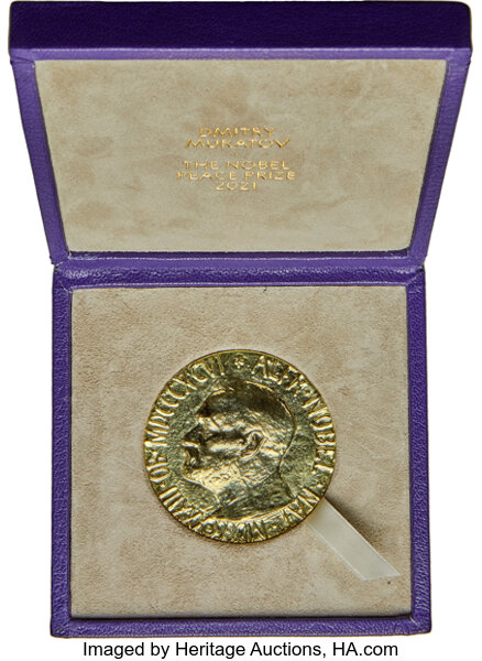 Laureatul Premiului Nobel pentru Pace, Dmitri Muratov, jurnalist rus și editor al ziarului independent de investigaţii Novaia Gazeta, şi-a vândut medalia pentru 103,5 milioane de dolari în beneficiul copiilor ucraineni strămutaţi din cauza războiului.