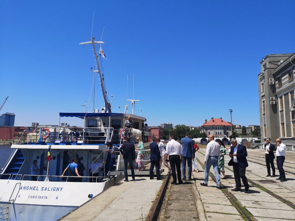 Atât echipa Băncii Mondiale, însoțită de specialiști din portul Constanța, cât membrii comisiei, au efectuat un tur tehnic de port cu nava Anghel Saligny.