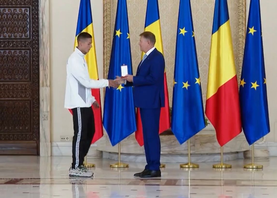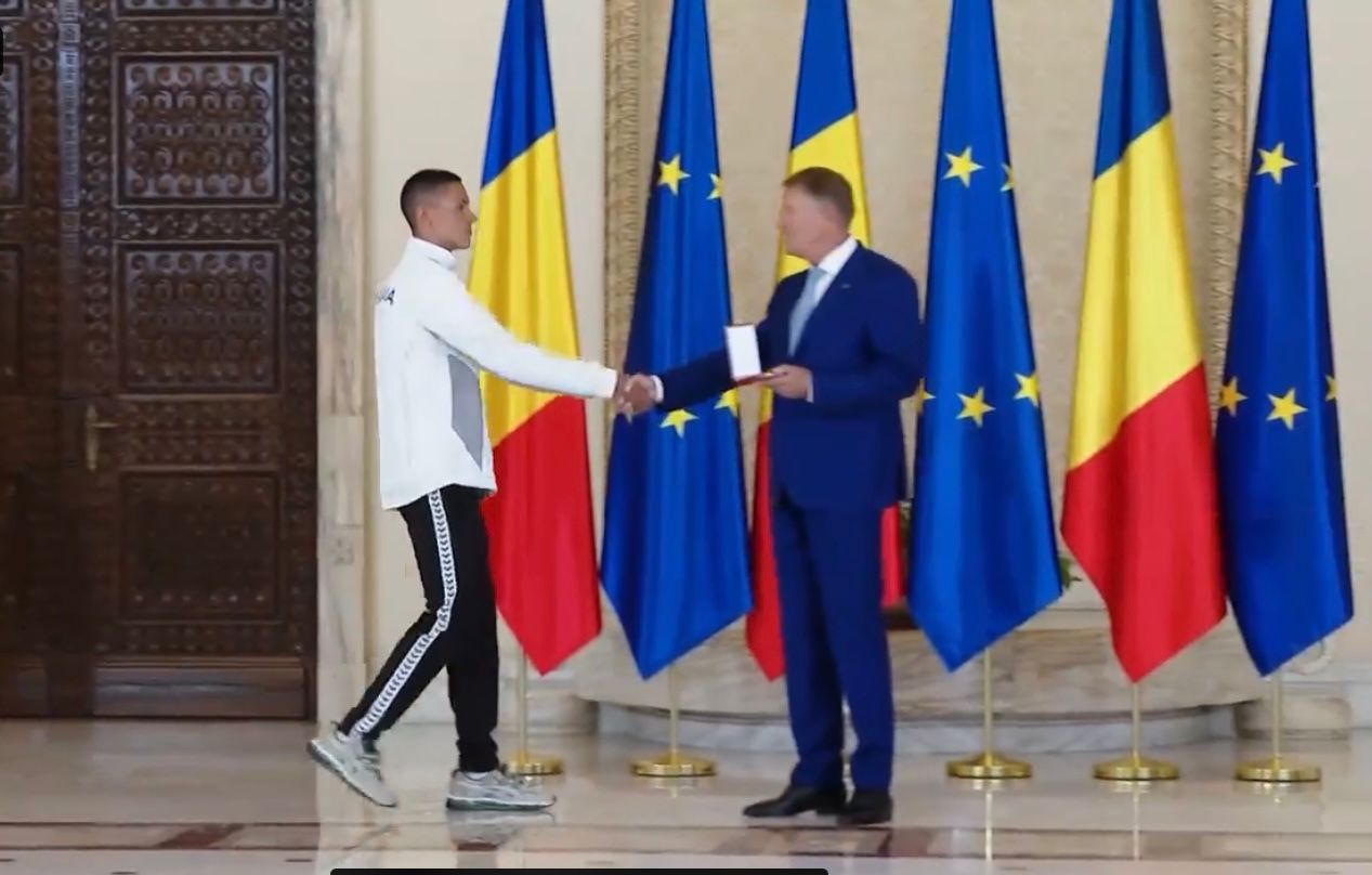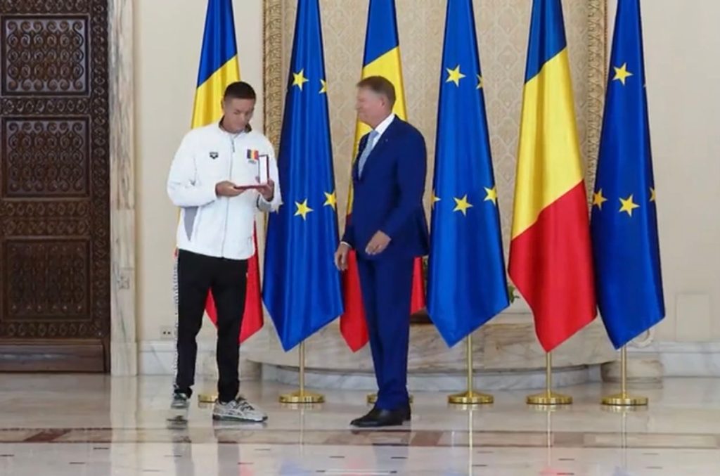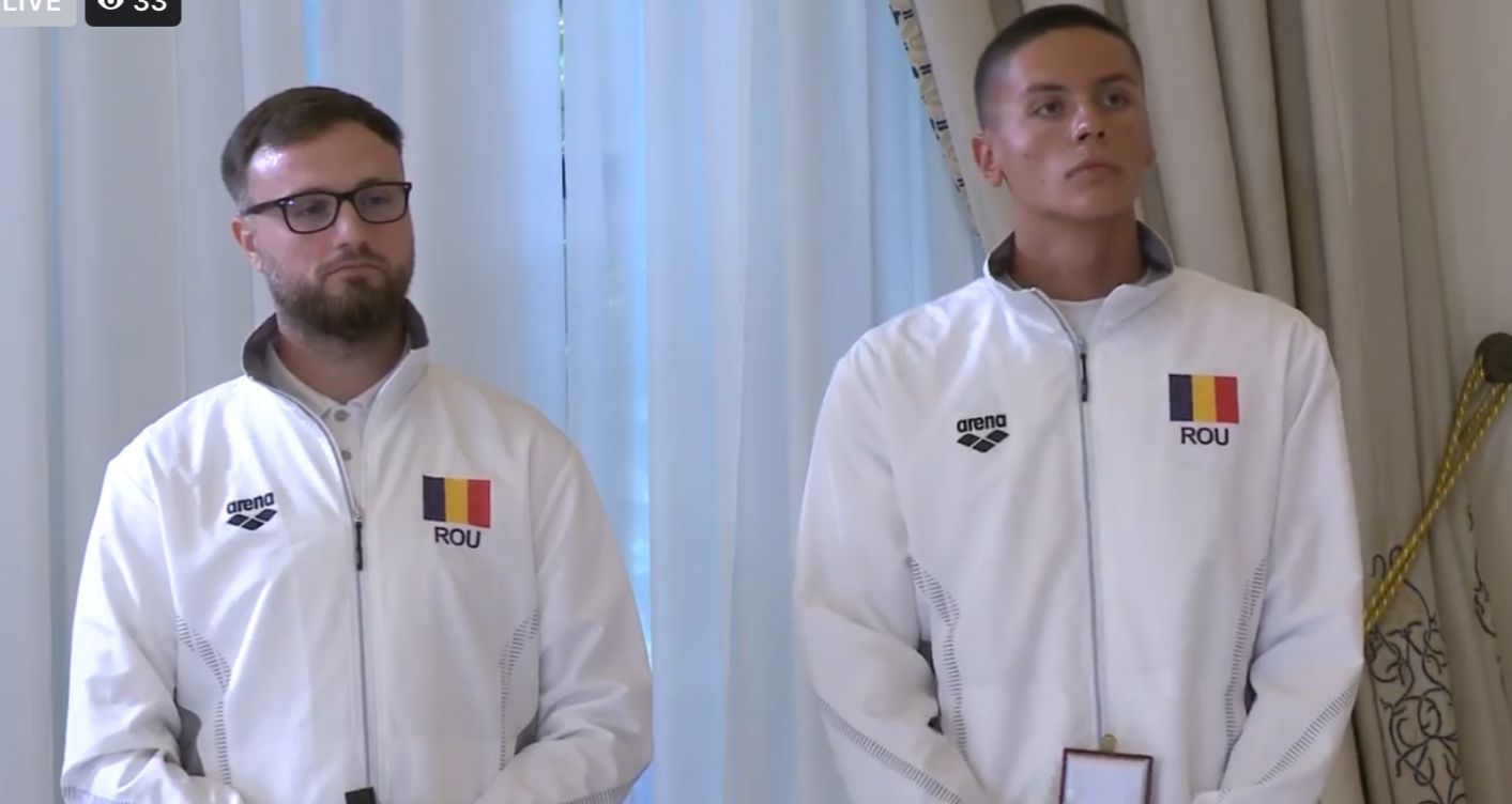 În urmă cu câteva momente, președintele Klaus Iohannis i-a decorat, în cadrul unei ceremonii ce a avut loc la Palatul Cotroceni, pe sportivul David Popovici și pe antrenorul acestuia, Adrian Rădulescu.