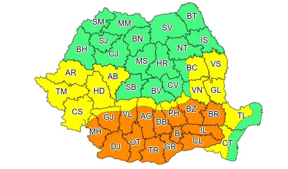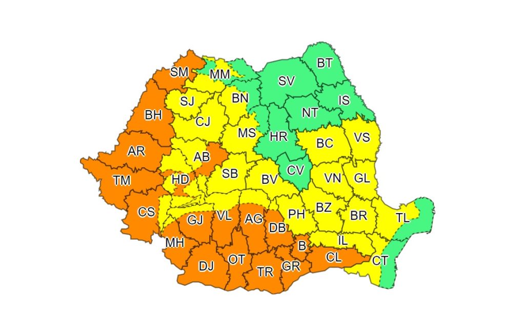 Administrația Națională de Meteorologie a emis astăzi o avertizare meteorologică – cod portocaliu și galben de căldură și disconfort termic ridicat.