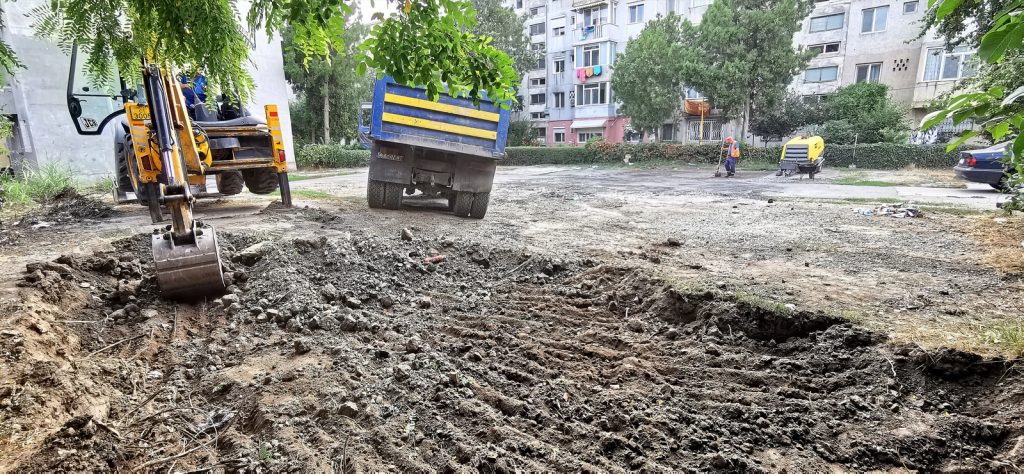 În același timp, au fost efectuate lucrările de pregătire a terenului pentru o nouă parcare situată pe amplasamentul unor foste garaje dezafectate. Este vorba despre parcarea situate pe strada Arcului, în spatele blocului F6 din cartierul Km 4-5, unde se lucrează la refacerea suprafețelor în două zone distincte.