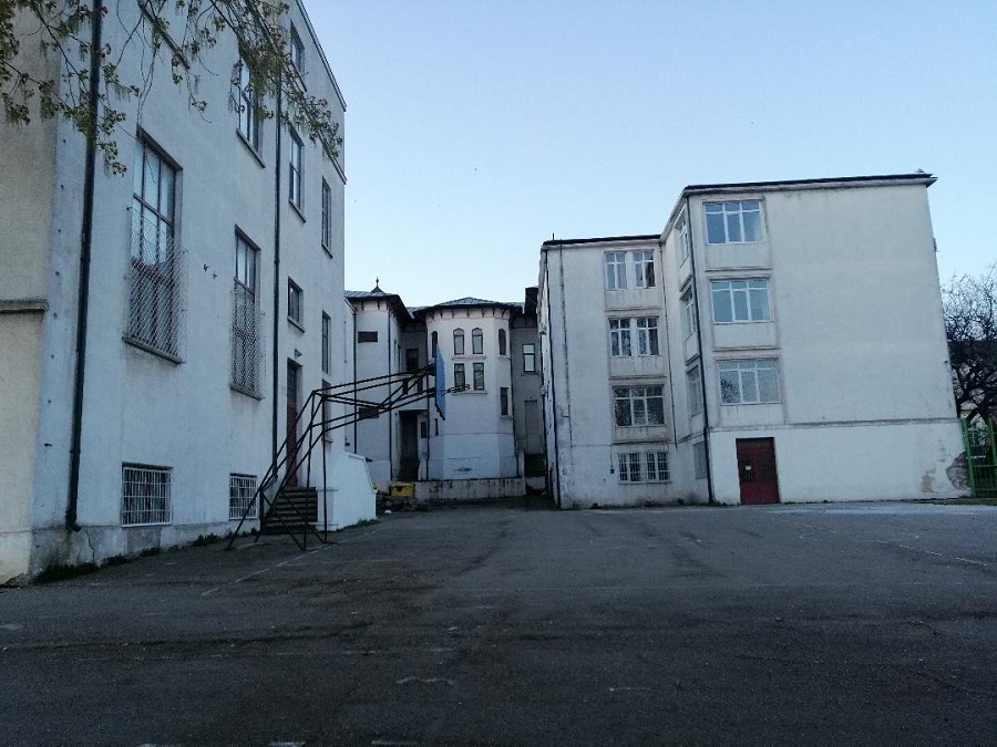 Curtea Colegiului Național Mihai Eminescu. Bazilica este îngropată sub beton.