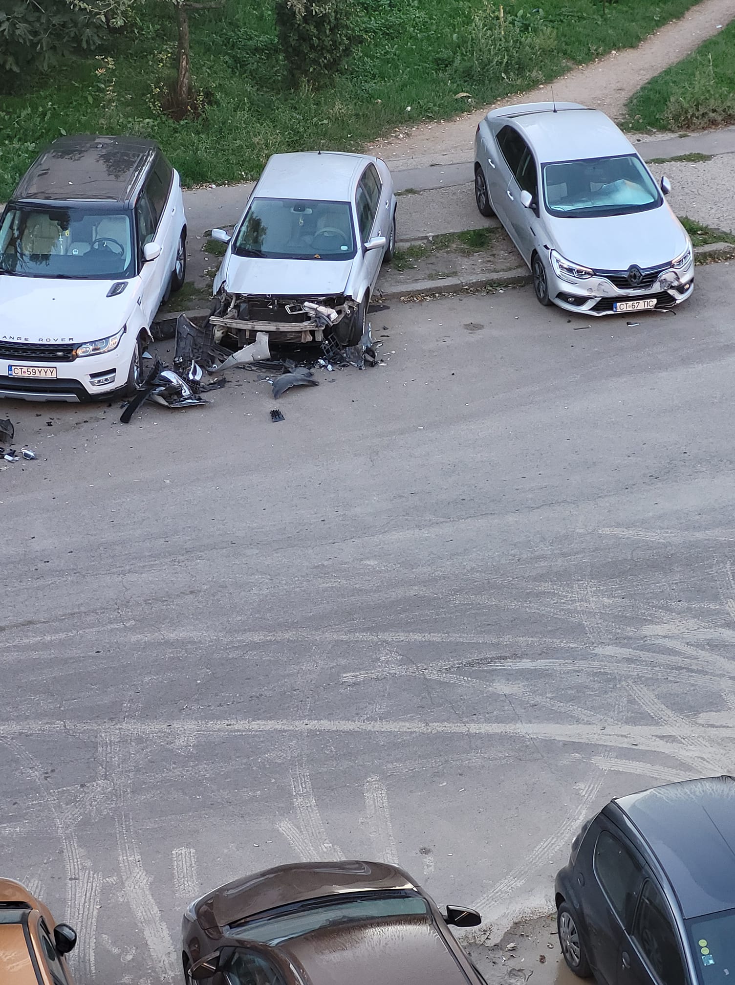 Pe rețelele de socializare au apărut imagini cu mai multe mașini avariate, printre care și un bolid de lux.