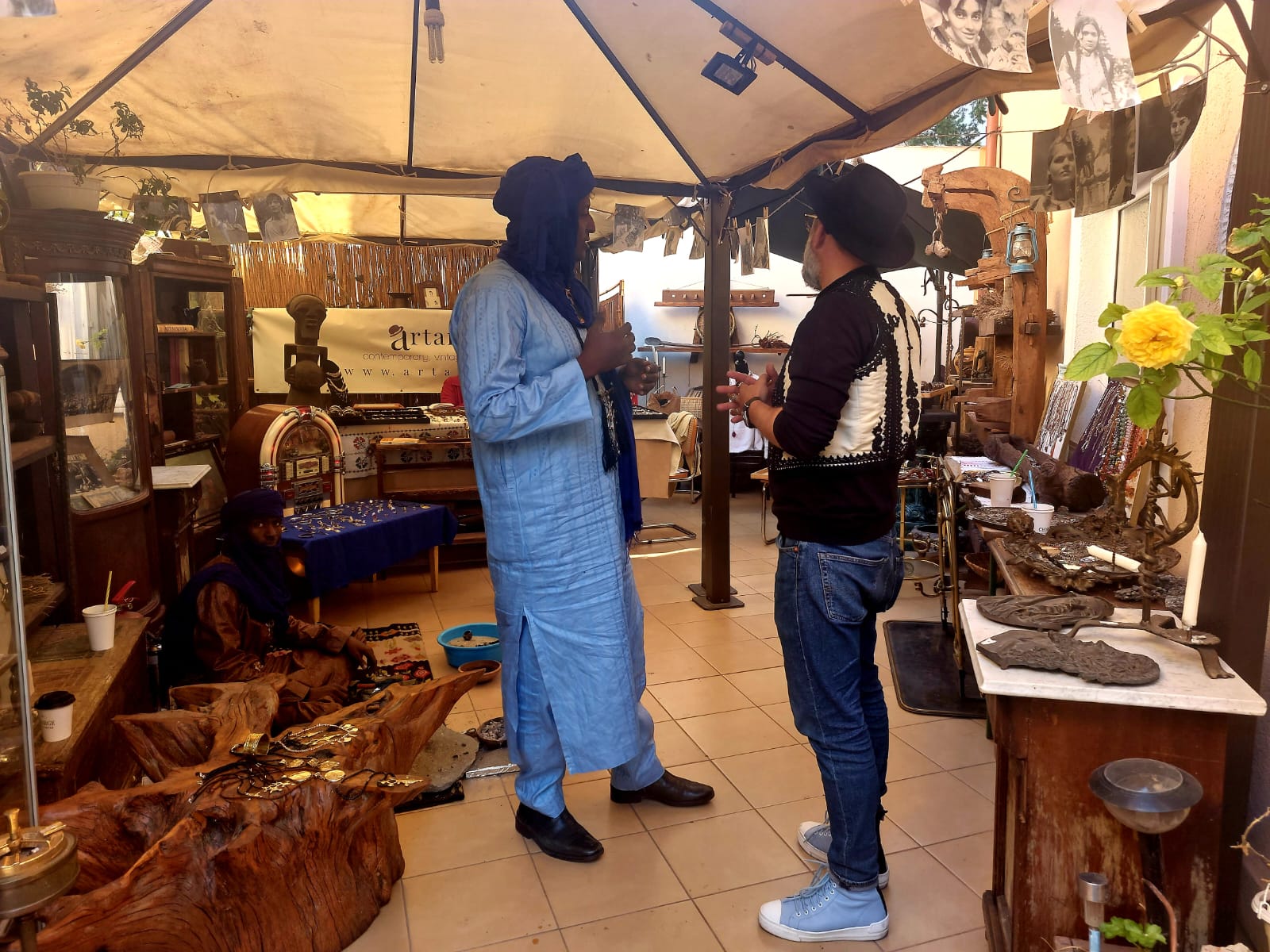 Souleymane Adoulo Albaka și Abdoulaye Ahmad au venit tocmai din Niger, din capitala istorică a națiunii tuarege – Agadez – pentru a participa timp de nouă zile la diverse „WorkShop-uri de Bijuterii Etnice Tuarege”. Cei doi artizani fac parte din societatea tuaregă Kel Inedan și au fost invitați special la ArtAntik Gallery, pentru a susține mai multe ateliere de metaloplastie și orfevrerie tradițională amazigh, manufacturând podoabe etnice tuarege.
