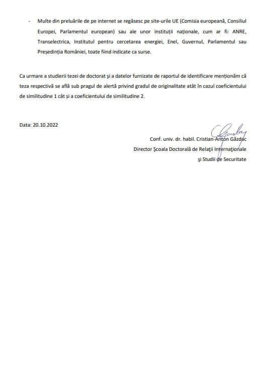 „Fragmentele identificate ca fiind problematice reprezintă aproximativ 1.923 de cuvinte din totalul de 65.000 de cuvinte ale tezei (2,95%)”, a adăugat Bode.