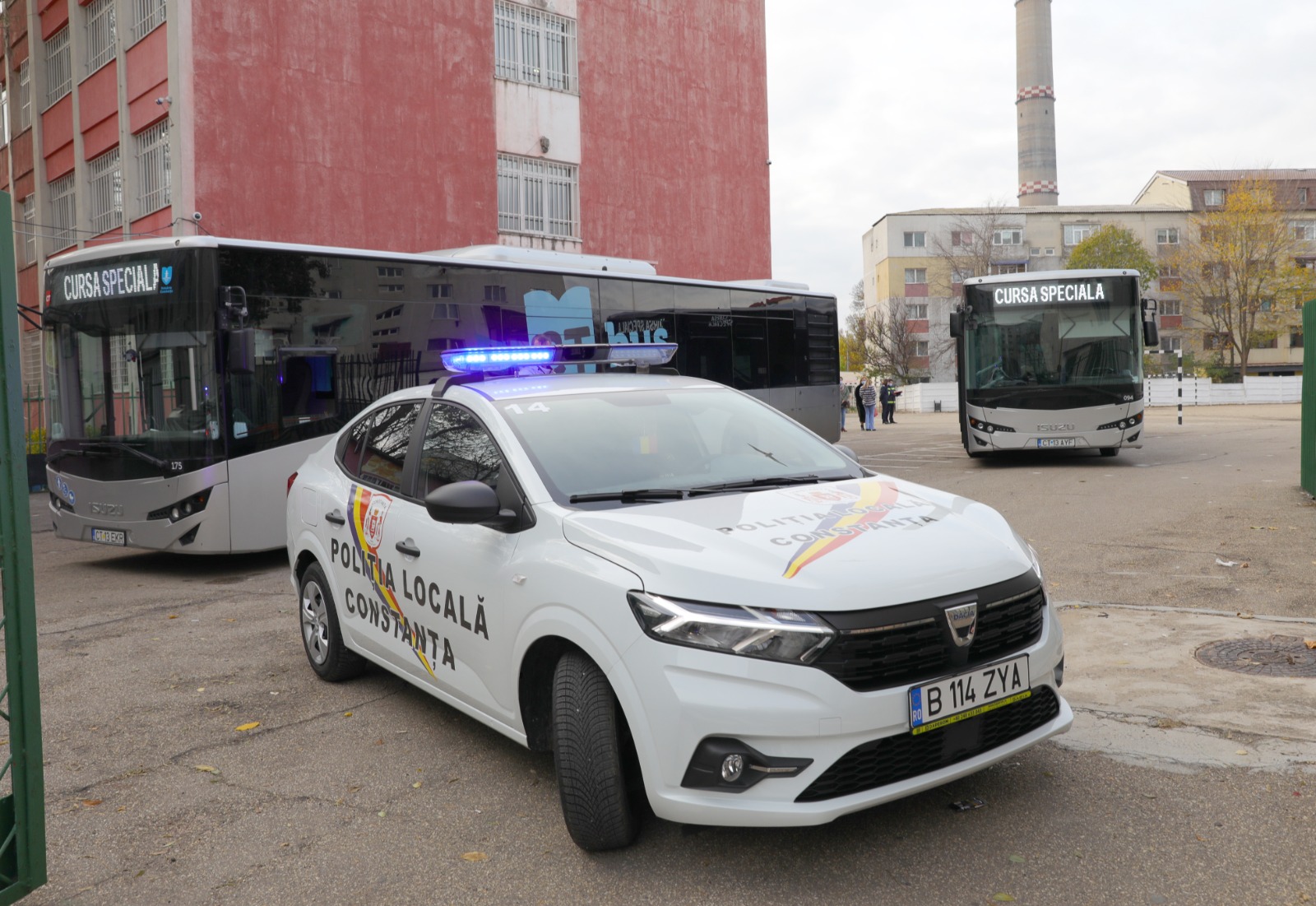 • Îndrumați de cadrele didactice și după ce li s-au pus măști de protecție, cei 650 de elevii au fost evacuați din clase către curtea școlii de unde au fost preluați de autobuzele CT BUS și duși în afara zonei de pericol.
