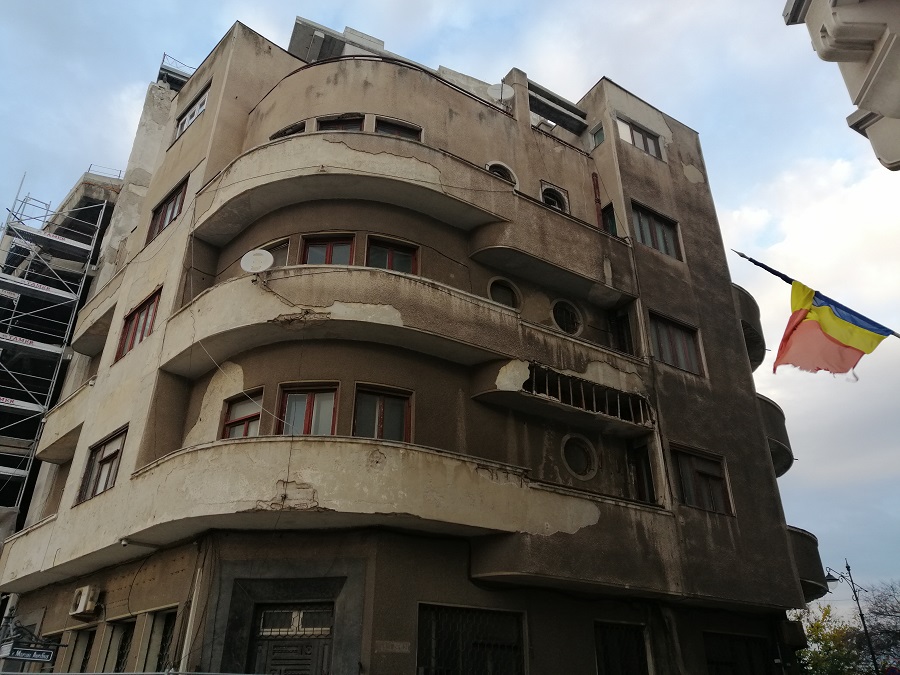Din păcate, pe lângă impunătoarele clădiri renovate de curând, în Piața Ovidiu am găsit și această construcție, care se descompune în fața noastră.