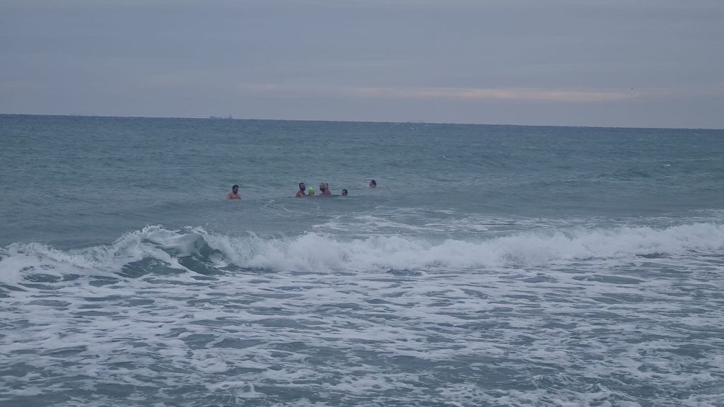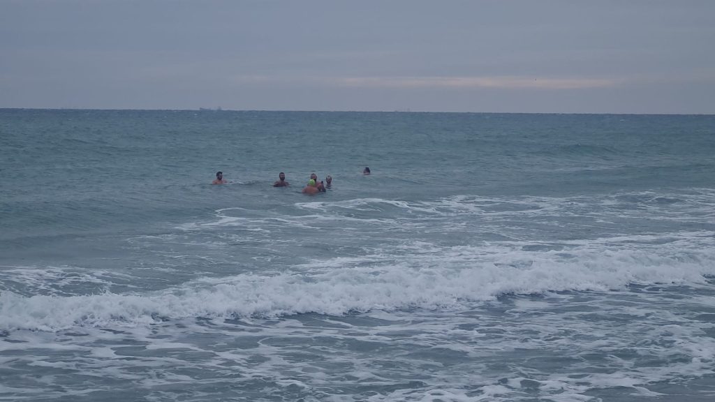 Între 5 și 35 de minute au rezistat tinerii în apa mării rece. Primele care au cedat au fost fetele, iar apoi unul câte unul și băieții.