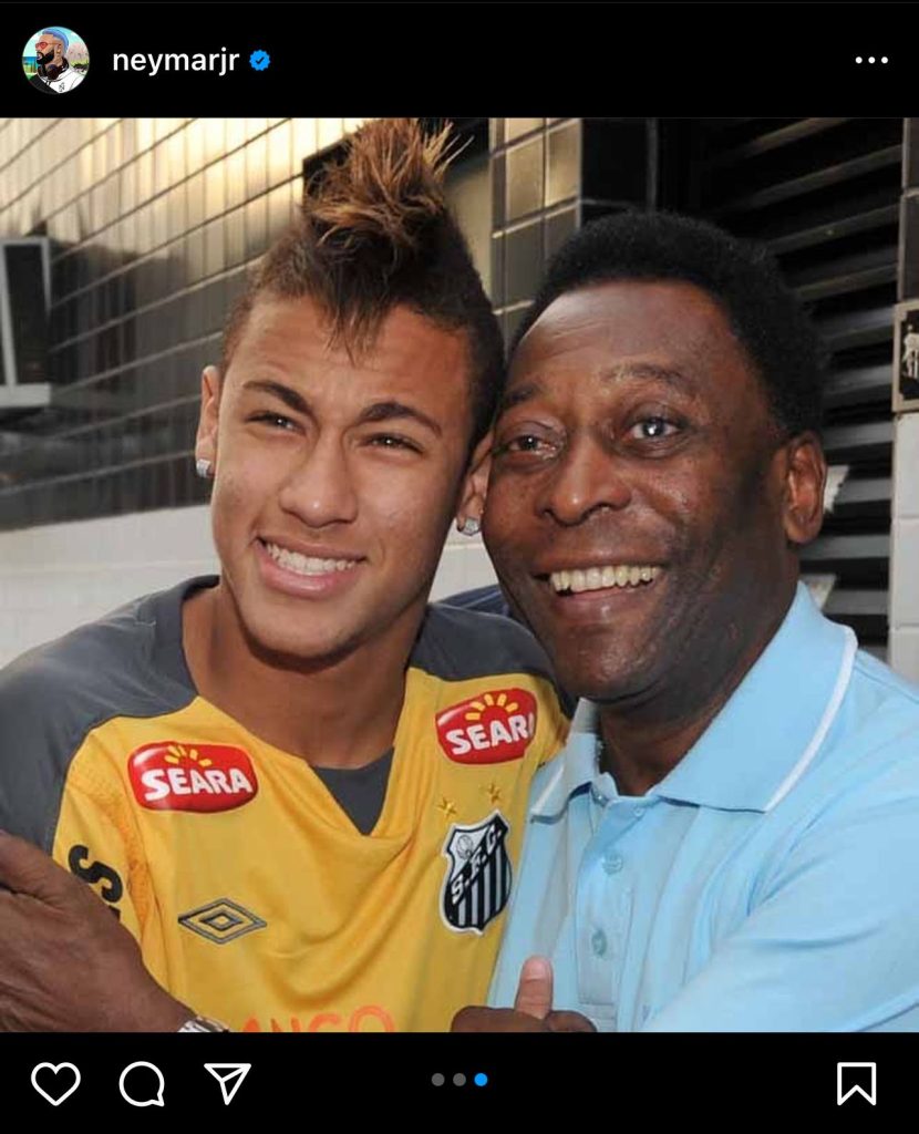 „Înainte de Pelé, «10» era doar un număr. Am citit această propoziție undeva, la un moment dat în viața mea. Dar această frază frumoasă este incompletă. Aș spune că înainte de Pelé, fotbalul era doar un sport. Pelé a schimbat totul. A transformat fotbalul în artă, în divertisment. A dat o voce săracilor, negrilor și, mai ales, a oferit vizibilitate Braziliei. Fotbalul și Brazilia și-au ridicat statutul datorită Regelui! El a plecat, dar magia lui va rămâne. Pelé este ETERNAL!”, a transmis fotbalistul brazilian Neymar.