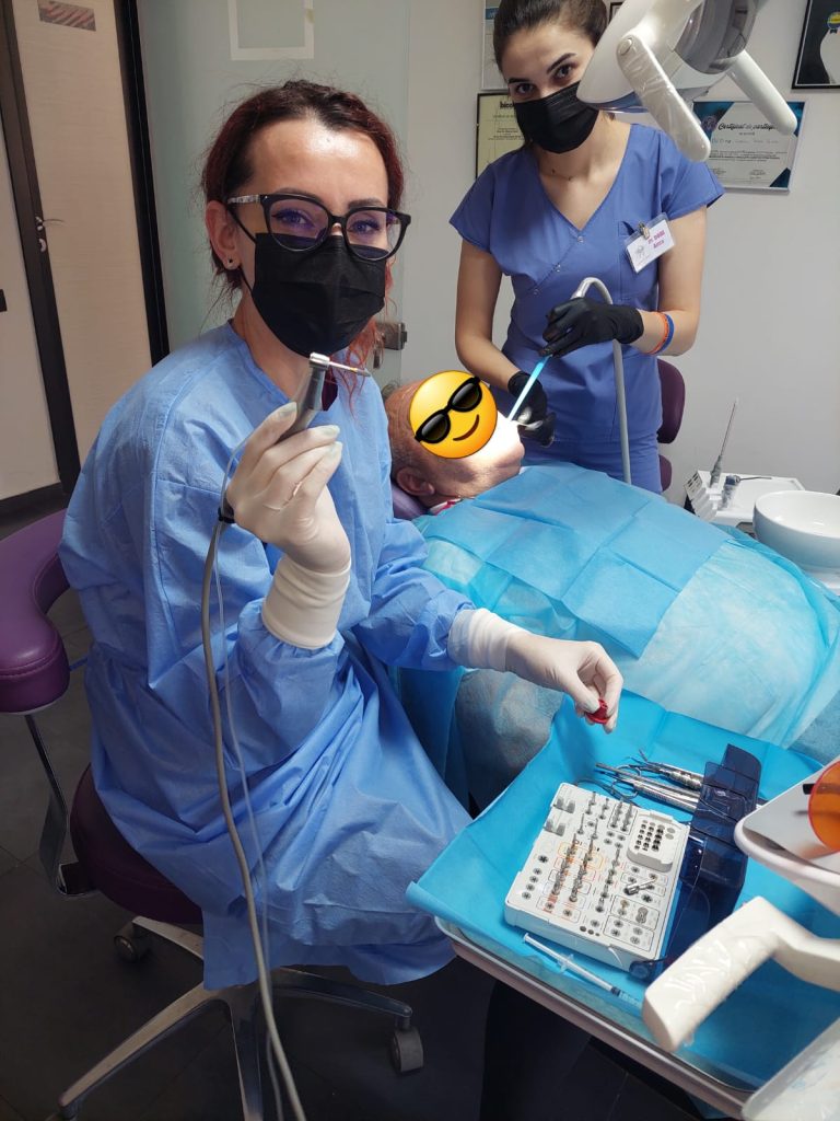 ,,Implanturile sunt dispozitive medicale din titan pur sau alte materiale biocompatibile. Ele au forma unui șurub, simulează rădăcina natural a dinților și se inserează în oasele maxilare. Sunt tratamentul de electie în cazul pierderii dinților naturali. Inserarea unui implant se face printr-o intervenție chirurgicală sub anestezie locală, iar durata intervenției depinde de numărul de implanturi dar și de situația clinică.” a transmis dr. Raluca Sofrone-Petre.