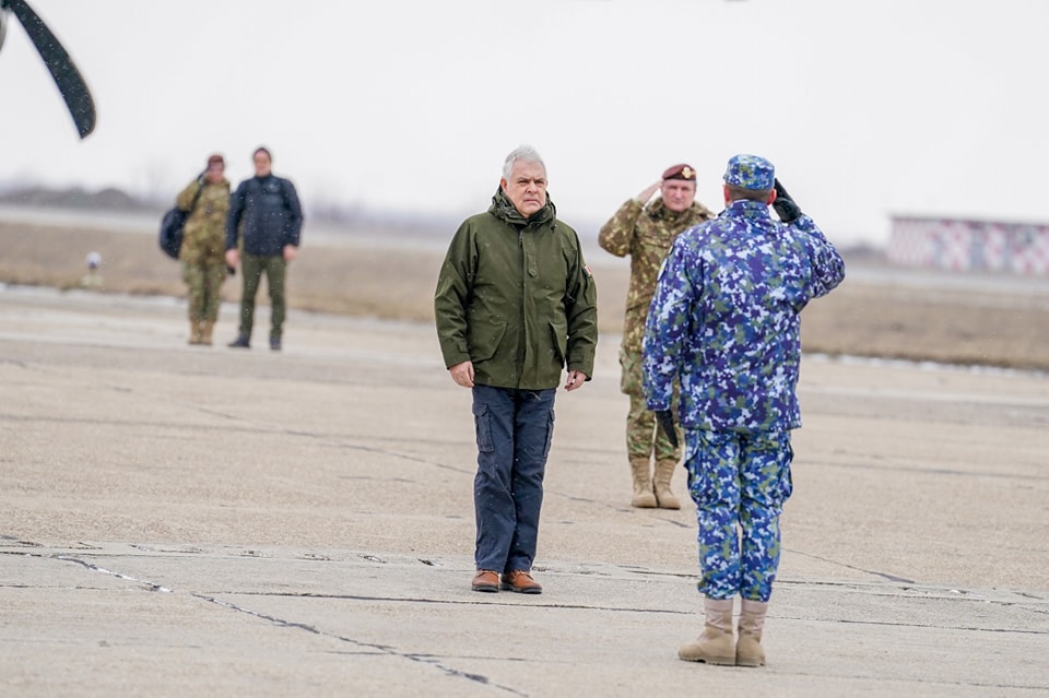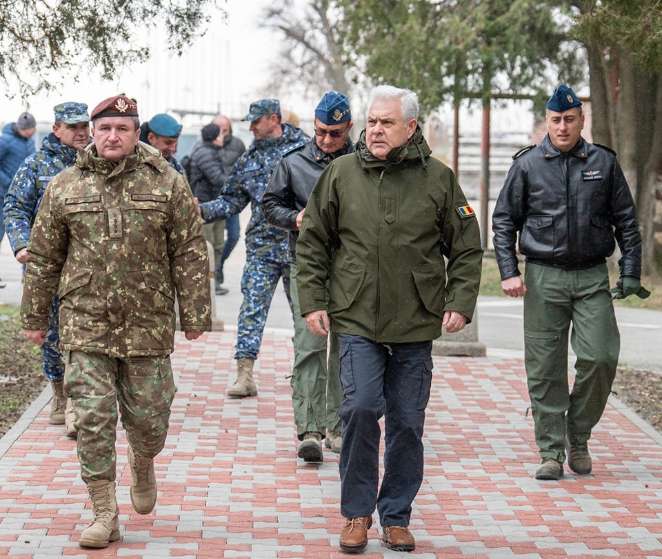 Ministrul apărării naționale, Angel Tîlvăr, și șeful Statului Major al Apărării, generalul Daniel Petrescu, au vizitat astăzi Baza 57 Aeriană Mihail Kogălniceanu.