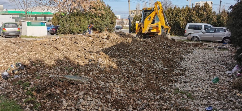 Vești bune pentru constănțeni! Pe terenul neamenajat pe care erau parcate autoturisme, în zona situată la intersecția străzii Dezrobirii cu strada Prelungirea Ion Roată, se construiește un spațiu verde dedicat recreerii.