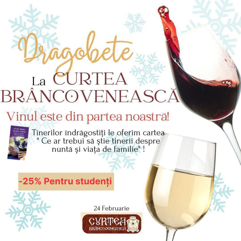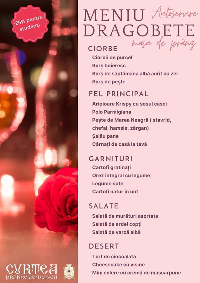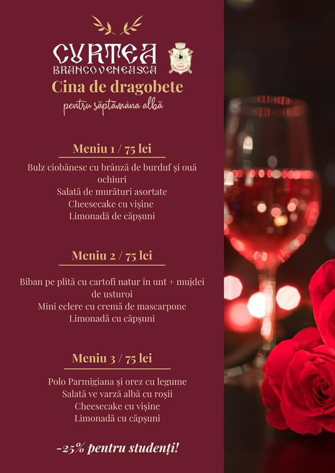 La Curtea Brâncovenească, vei avea șansa să savurezi preparate unice, din ingrediente naturale, de cea mai bună calitate, vei bea vinuri bune și vei petrece momente unice, alături de jumătatea ta, într-o atmosferă romantică.