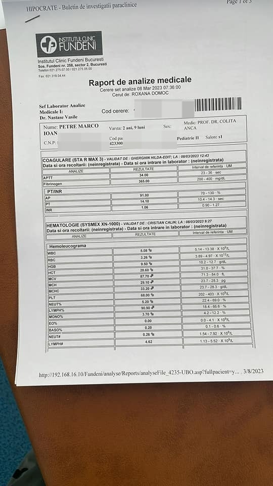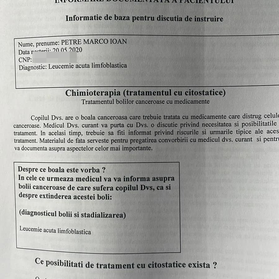 „Analize care s-au dovedit a fi…răspunsul durerilor mele cumplite, așadar pe 07.03.2023 după transferul meu la București, s-a constatat faptul că am o „bubă” – leucemie acută limfoblastică.