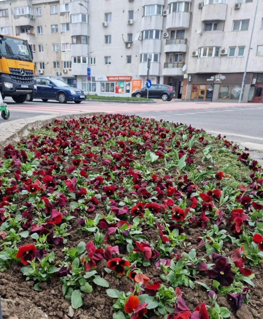 „10.000 de panseluțe multicolore îmbogățesc spațiile pentru flori din intersecții, jardiniere și parcuri. Acestora li se adaugă alte sute de butași de trandafiri care sunt plantați zilele acestea pe spațiile verzi de pe faleza Cazino, parcul Arheologic și alte zone din oraș”, informează Primăria Constanța.