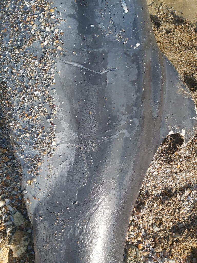 „Este vorba despre trei exemplare de afalin, cea mai mare specie din Marea Neagră, două femele și un mascul și toate prezentau urme de plase, hematoame subcutanate, semn că s-au zbătut în plasă, iar unul avea coada secționată, iar asta este o practică a pescarilor când delfinii se prind în plase”, a declarat Costin Timofte, de la ONG Mare Nostrum.