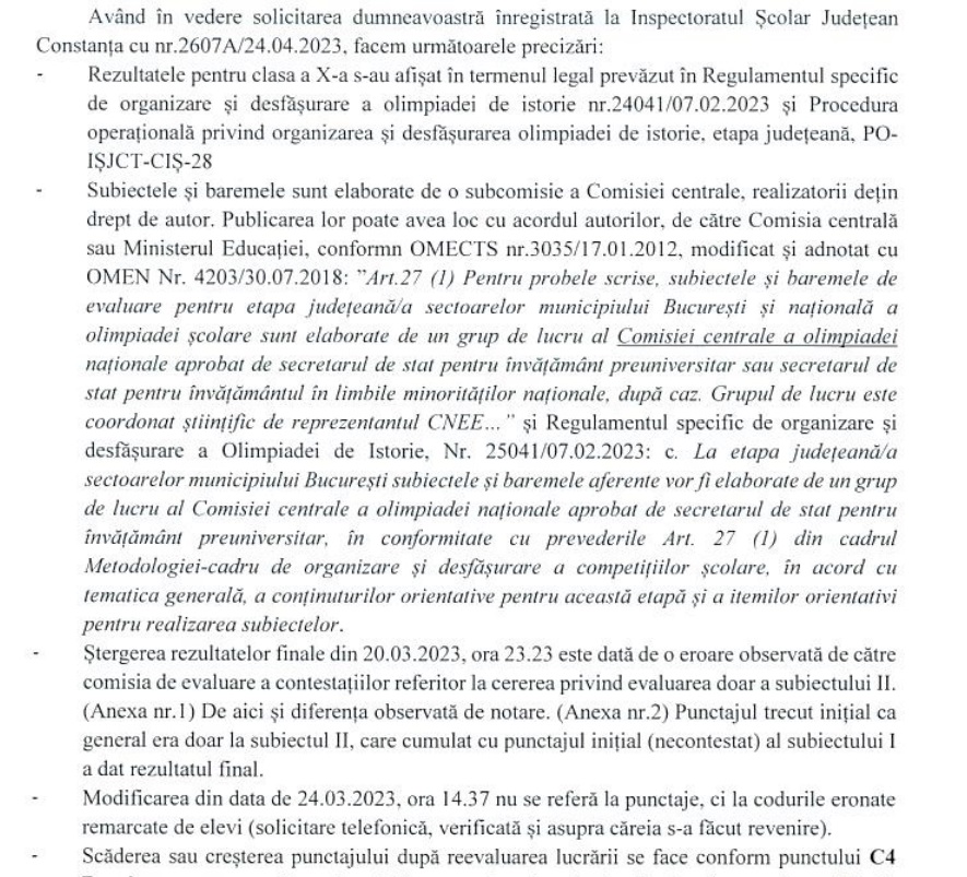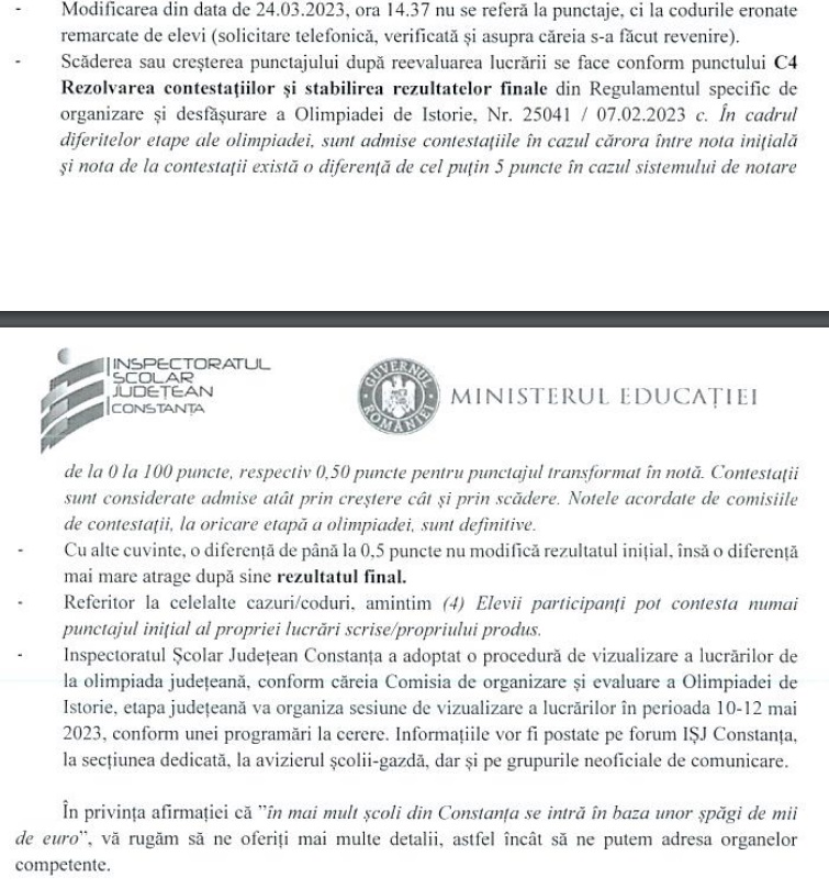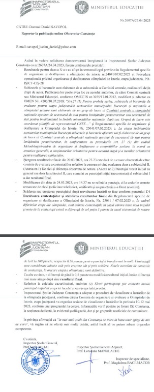 Însă, în cele din urmă, solicitarea noastră primește și un răspuns din partea ISJ Constanța: