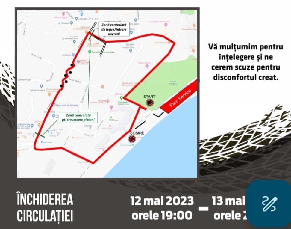 Campionatul Național de Super Rally revine la Mangalia în acest week-end. Astfel, de vineri, 12 mai, ora 19:00, până sâmbătă, 13 mai, ora 21:00, va fi oprită circulația autovehiculelor pe mai multe străzi.