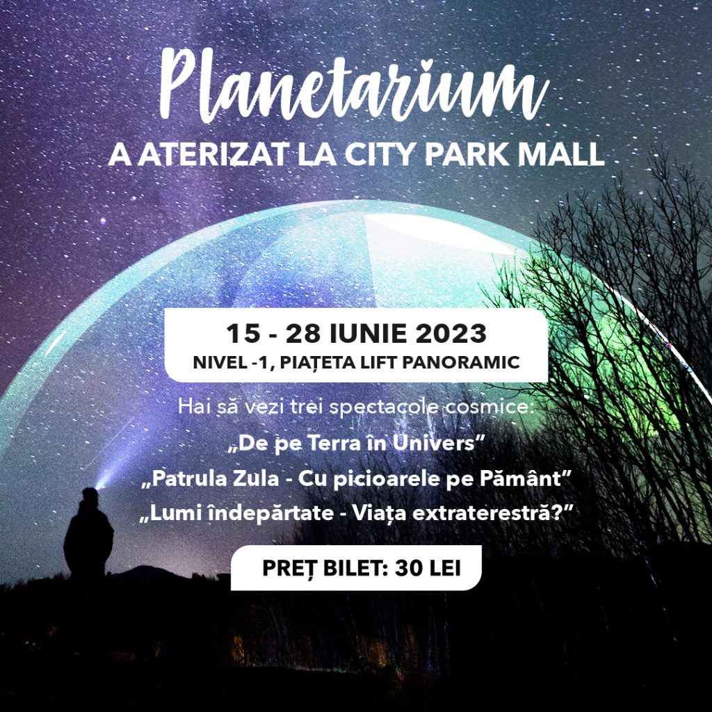 Micuții pasionați de lumea Cosmosului sunt așteptați să pătrundă în lumea magică a Universului organizată chiar în City Park Mall, în piațeta liftului panoramic, la nivelul -1. În perioada 15-28 iunie, aceștia vor avea parte de trei spectacole cosmice la care nu este nevoie de telescop.