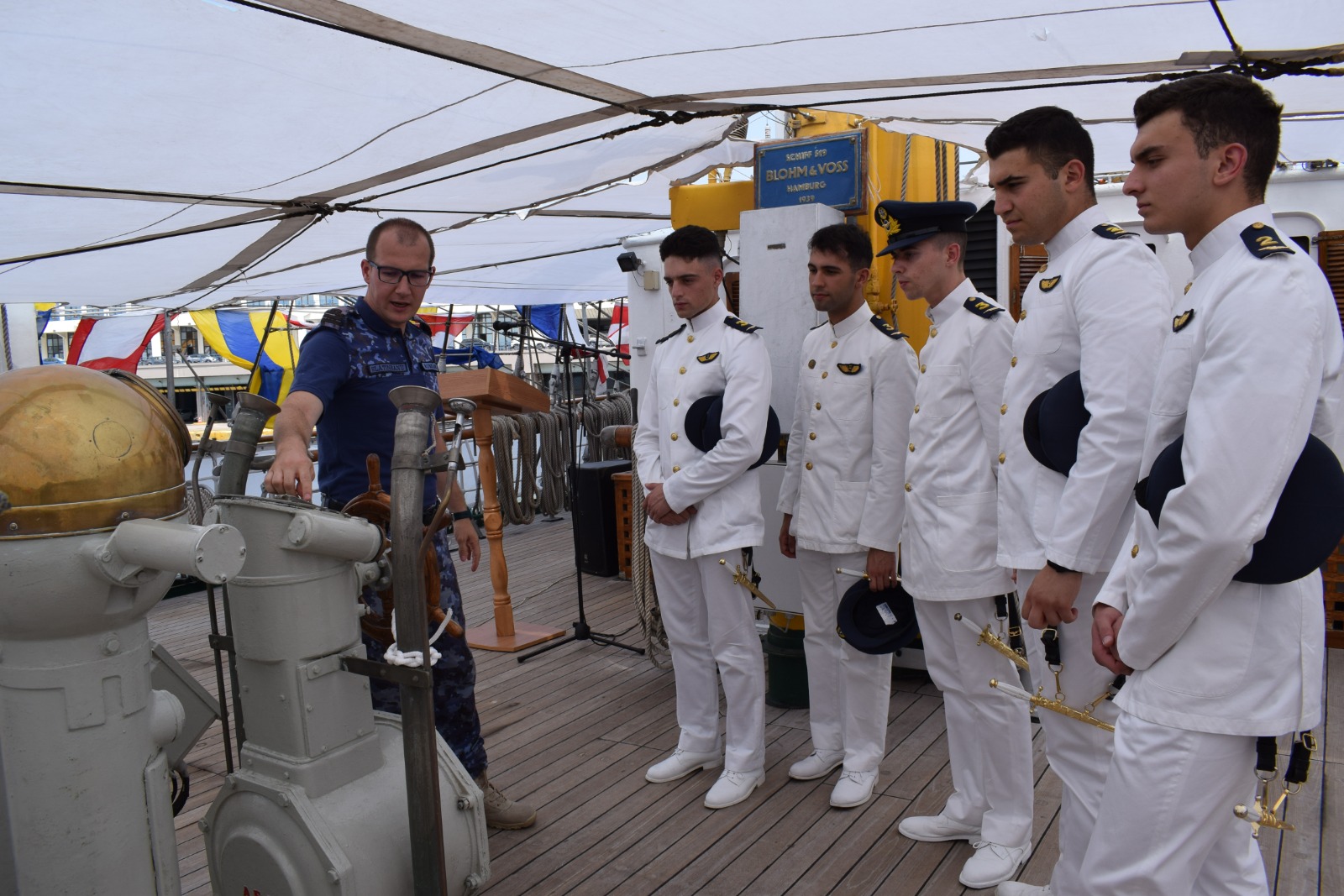În prima zi de escală, la bordul navei au sosit rectorul Academiei Navale „Mircea cel Bătrân”, contraamiralul de flotilă conf. univ. dr. Alecu Toma, însoțit de prorectorul pentru programe și relații internaționale, colonelul conf. univ. dr. Cătălin Popa.
