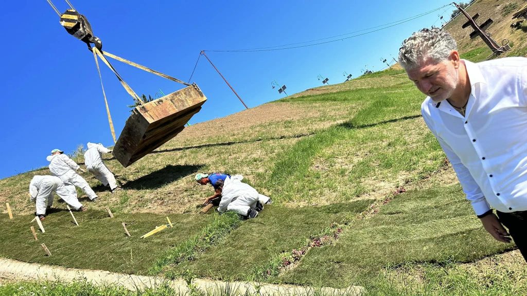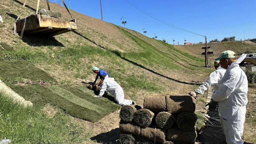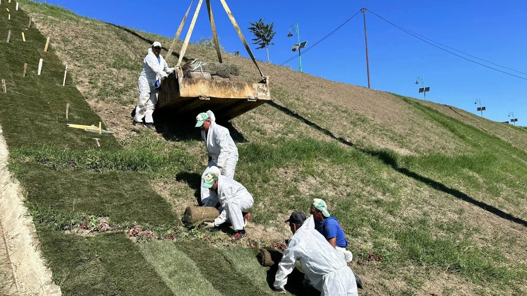 - În parcul de la Piața de Pește se montează azi rulouri de gazon și se construiește un grup sanitar, urmând ca apoi să amenajăm un loc de joacă