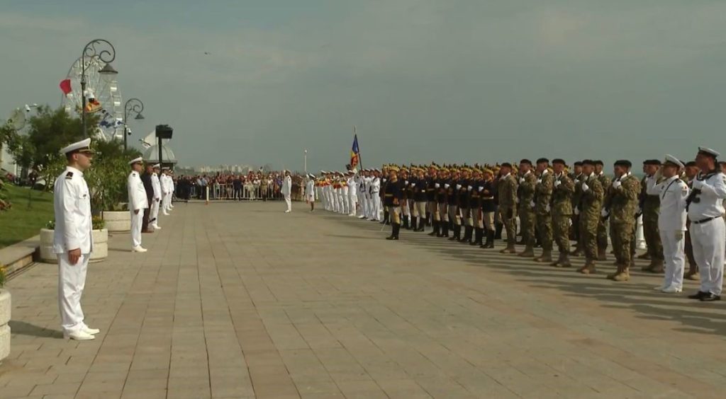 Momentul va fi urmat de defilarea navei-şcoală „Mircea”, ambasadorul onorific al României pe mările şi oceanele lumii, având cadeţii de la Academia Navală „Mircea cel Bătrân” pe vergi pentru saluta publicul spectator, în timp ce un elicopter militar va lansa trei scafandri paraşutişti.