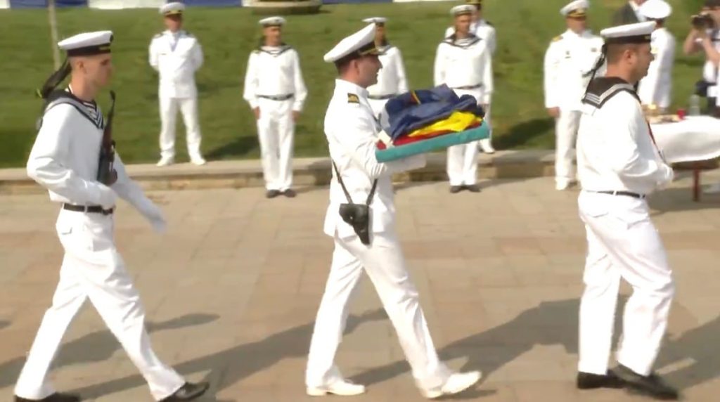 Ceremonia a început la ora 10.00, cu ridicarea pavilionului, geacului şi marelui pavoaz la bordul navelor militare, concomitent cu intonarea Imnului Naţional al României şi cu executarea a 21 de salve de tun.