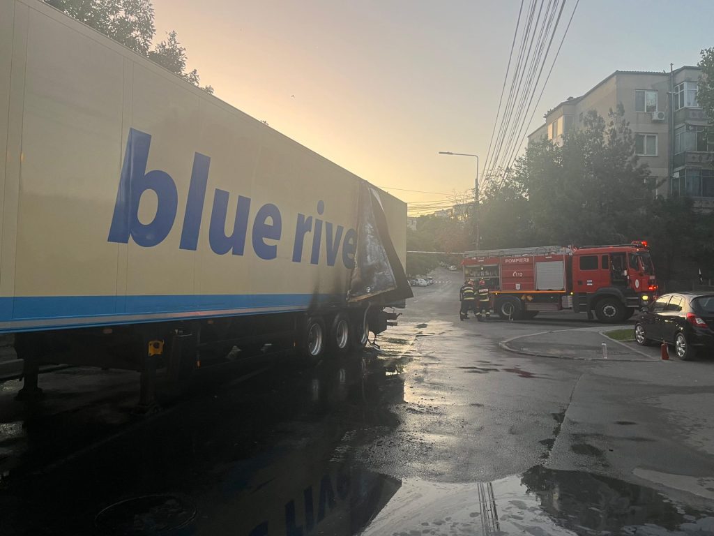 Incendiul se manifesta la roțile din spate a remorcii și s-au extins la prelata acesteia, pompierii reușind să limiteze propagarea flăcărilor inclusiv la marfa pe care o transporta.