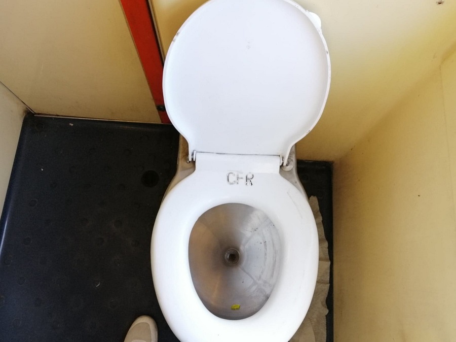 Sigur, puteau să scrie „CFR” și pe mizeria care a devenit una cu pereții toaletei.