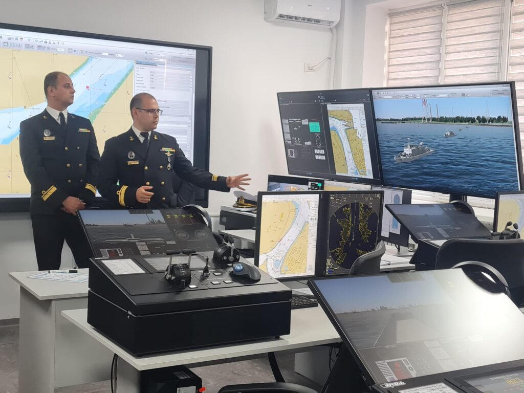 „În momentul de față, ne aflăm la stația de intrucție a simulatorului de ape interioare. De aici putem să creăm scenarii, iar după facem monitorizare. Avem posibilitatea de a simula orice tip de vreme și orice anotimp precum și navigația pe timp de zi sau noapte”,