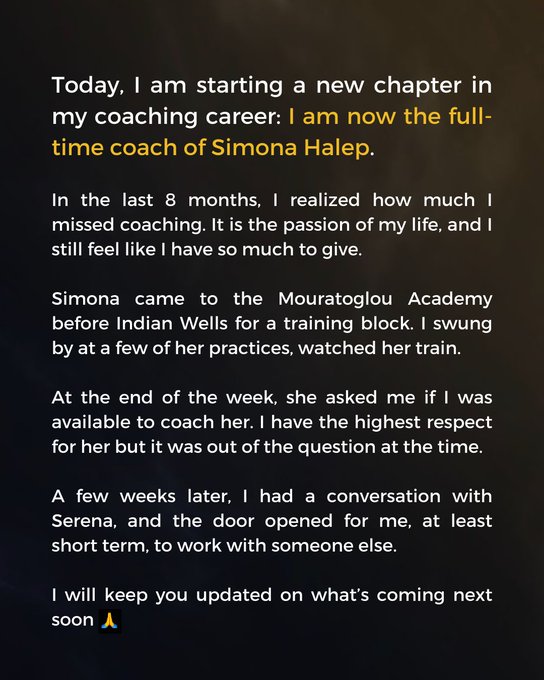 Patrick Mouratoglou a publicat vineri seară un clip video pe contul său de Instagram prin care și-a recunoscut vina în contextului suspendării primite de Simona Halep pentru dopaj.