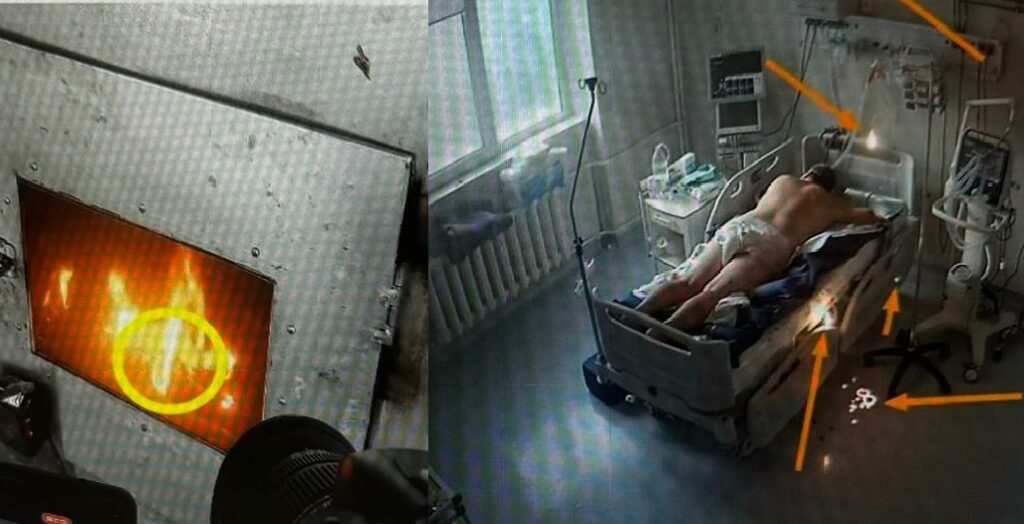 imaginile surprinse de catre camerele de supraveghere releva momentele premergatoare incendiului si arata cum bucati incinse si aprinse cad peste pacientul intubat, a precizat avocatul Cuculis.