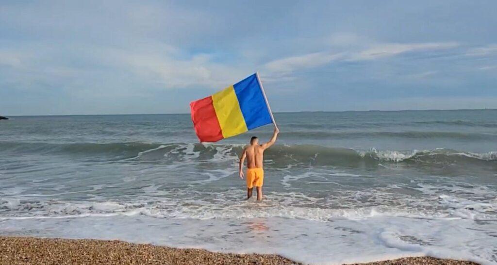 Ziua națională a României a fost sărbătorită într-un mod inedit la Constanța. Un bărbat a ales să intre în mare cu drapelul în mână chiar de 1 decembrie.