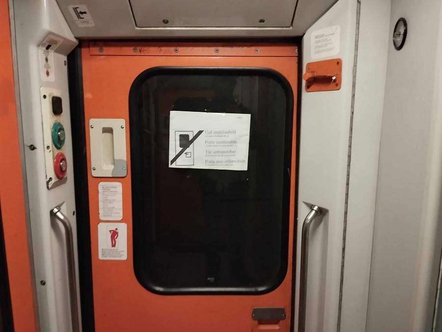 Trenul acesta a ajuns la timp (wow), doar că nu puteai să te urci în el pe unde vrei, pentru că ușa asta, ca exemplu, nu funcționa.