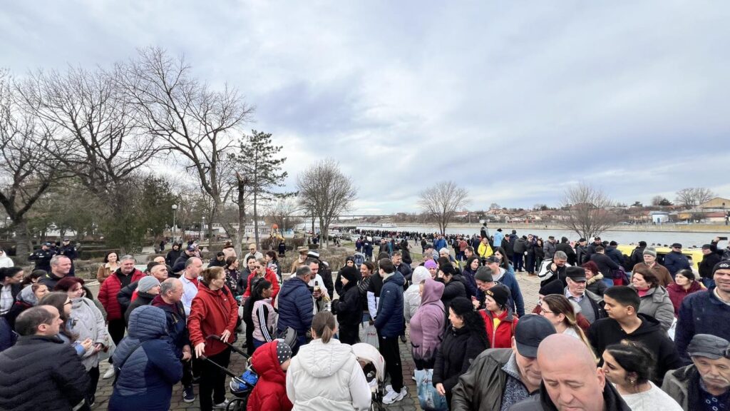 După săvârșirea slujbei religioase, atenția tuturor s-a îndreptat spre marginea canalului, unde 10 tineri așteptau pregătiți să sară în apa rece pentru a recupera crucea. Cristian Tranulea, din Constanța, a fost norocosul care a reușit să ajungă primul la sfânta cruce aruncată de părintele protopop Petrică Ciobanu. Deși are doar 23 de ani, Cristian este profesor de înot, a participat la numeroase concursuri și are în palmares titlul de vicecampion mondial la înot în ape înghețate.