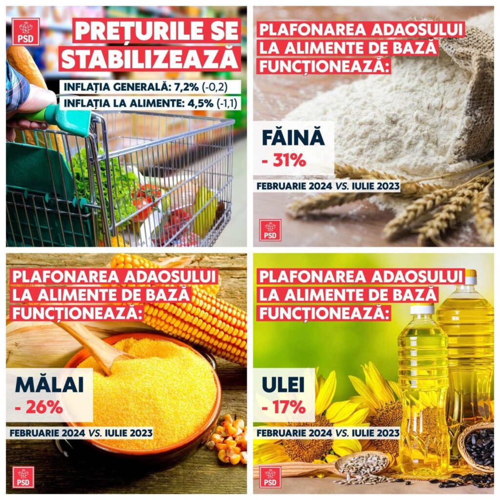 Datorită măsurilor adoptate de guvernarea PSD, prețurile alimentelor au scăzut în februarie! Inflația la această categorie de produse este de 4,5%, cu mult sub rata generală a inflației (7,2%) și în scădere față de luna ianuarie (5,6%).