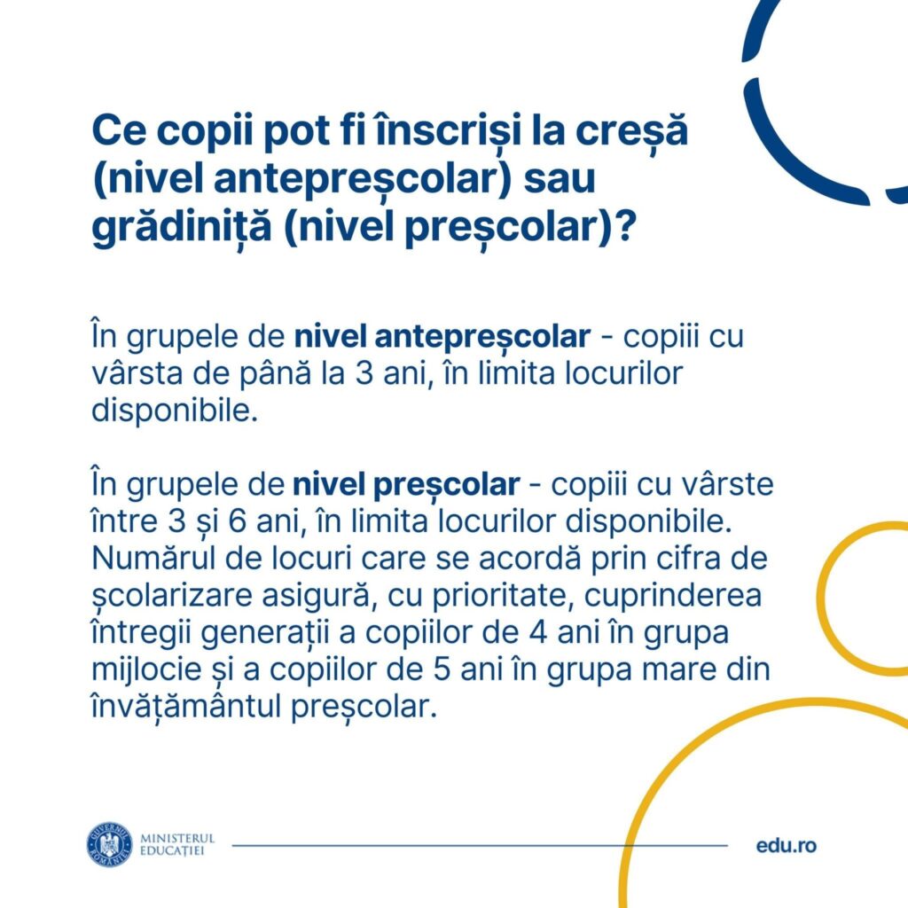 Între 20 şi 24 mai se va face reînscrierea copiilor care frecventează creşa sau grădiniţa în acest an şcolar.