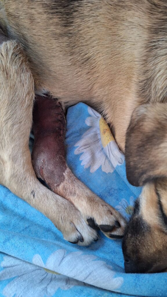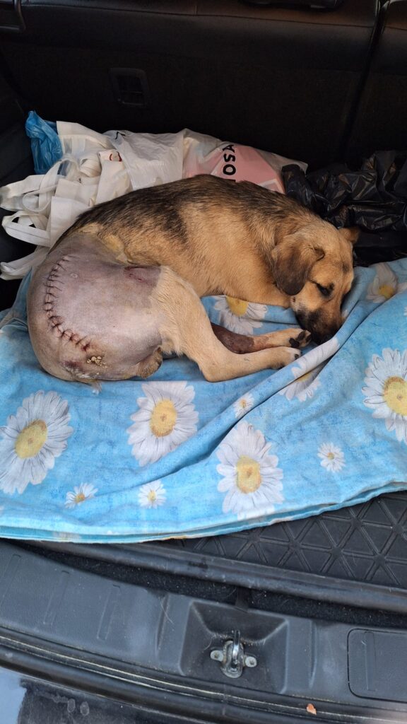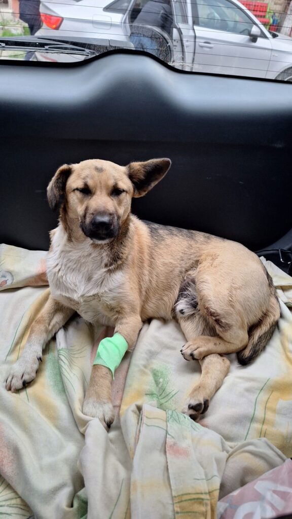 Oamenii buni din zonă au dus câinele la veterinar pentru că șoferul a fugit. Mai mult decât atât, familia respectivă l-a adoptat.