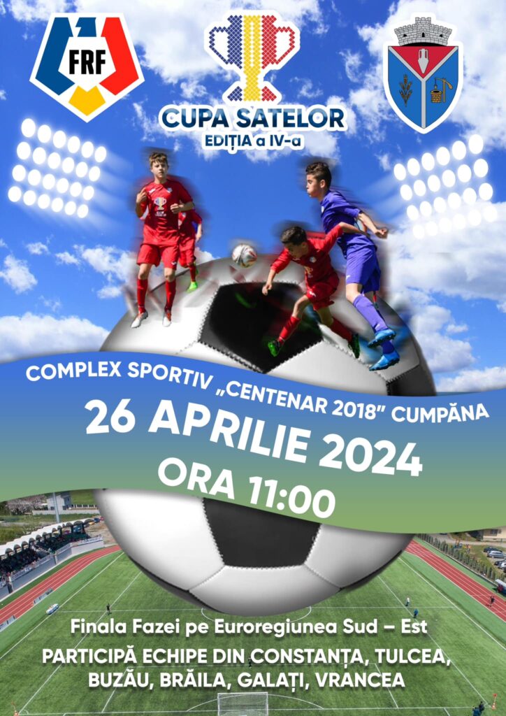 Vineri, 26 aprilie, începând cu ora 12:00, în cadrul Complexului Sportiv “Centenar 2018” din comuna Cumpăna se va disputa Finala celei de a IV-a ediții a competiției “Cupa Satelor la fotbal U13 – Faza pe Euroregiunea Sud – Est”.