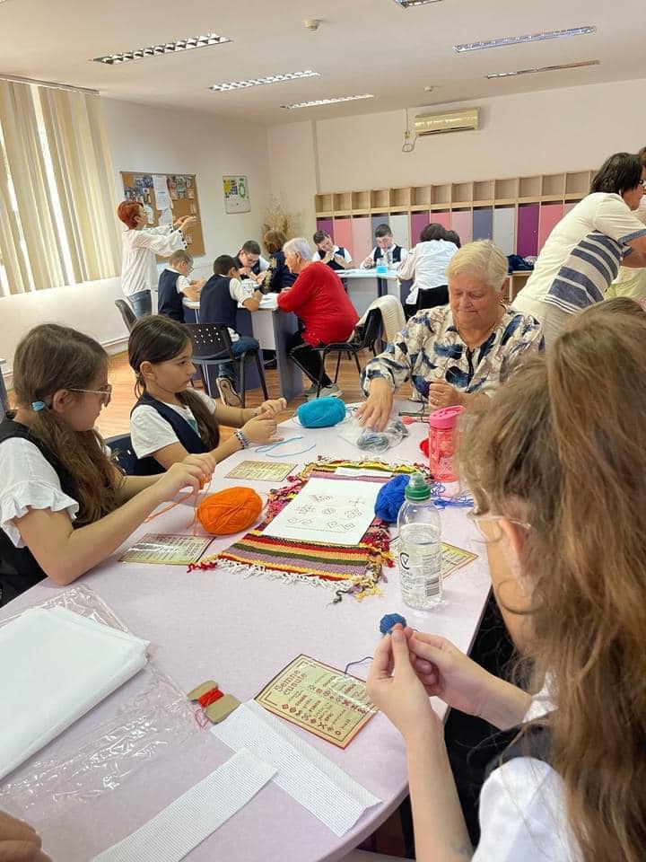 Întâlnirea a inclus și un atelier de pictat pe obiecte de ceramică, în care cei mici au fost ajutați și îndrumați de senioarele de la centru.