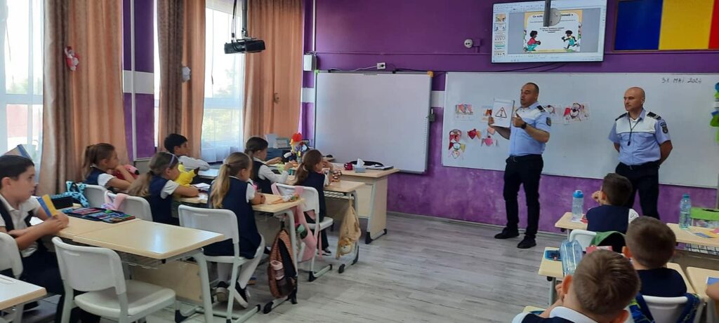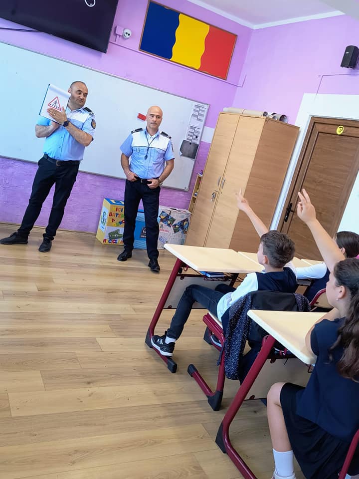 Trei clase de elevi din ciclul primar, de la școala Școala Gimnazială „Grigore Moisil”, au fost vizitate, ieri, de polițiștii locali.